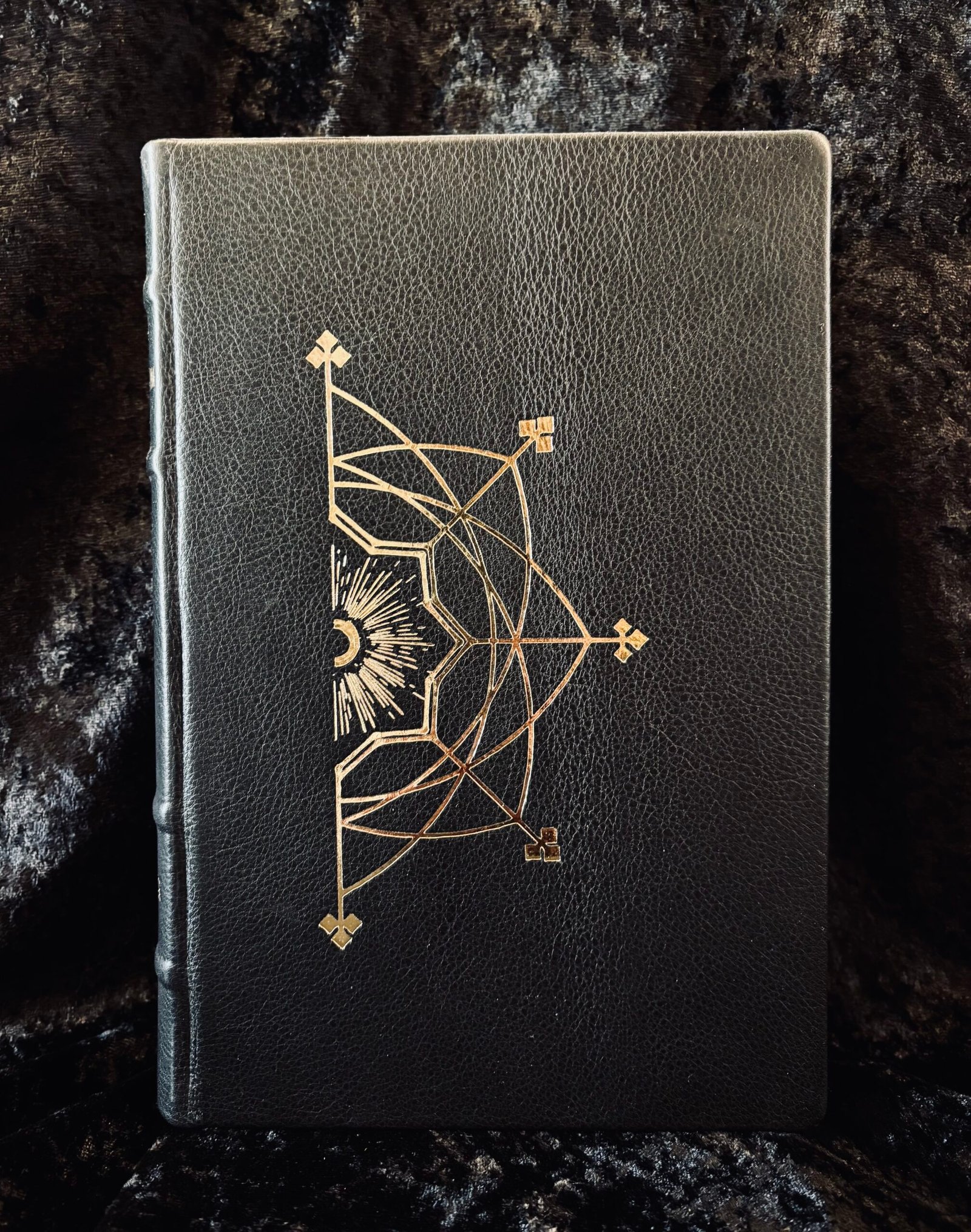 Book is a signed, deluxe leather bound limited edition. Gold foil stamping on the front and back boards, satin ribbon markers, marbled endpapers and ribbed spine. Only 72 copies of this deluxe edition are  produced.